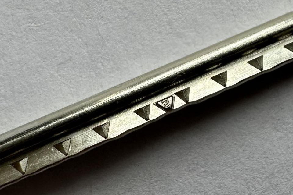 The mark represents a micro letter “S” from the SINTOMS Company logo, made in a triangular pyramid frame of the fret metal.